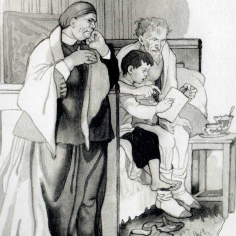 Предлагаем вам отрывок из статьи Л. Н. Толстого, посвящённой учреждению школ в крестьянской среде сразу после отмены крепостного права. В ней наглядно отражены общепринятый в то время метод обучения грамоте, увиденный Толстым в одной из деревенских школ, и царившие там нравы.