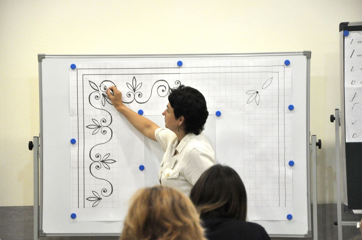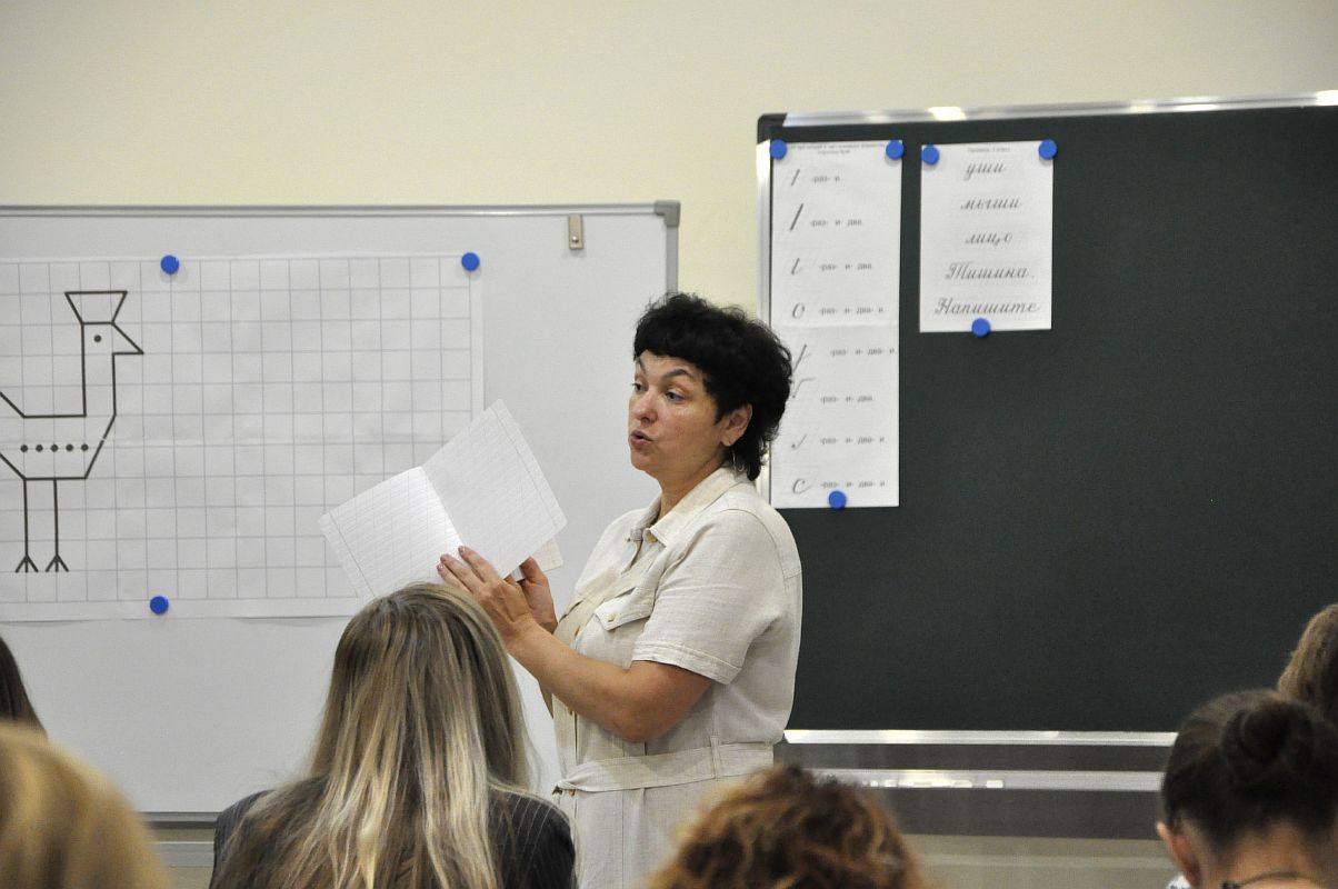 Руководитель этого центра и по совместительству тренер-методист РКШ Ирина Равильевна Ефимова, по словам участников семинара, не просто объяснила программу, но и научила каждого правильной посадке и постановке пера, пошагово познакомила с написанием всех элементов букв на практике — и, конечно, «зарядила своей любовью к программе, желанием изучать её дальше и двигаться вперёд».