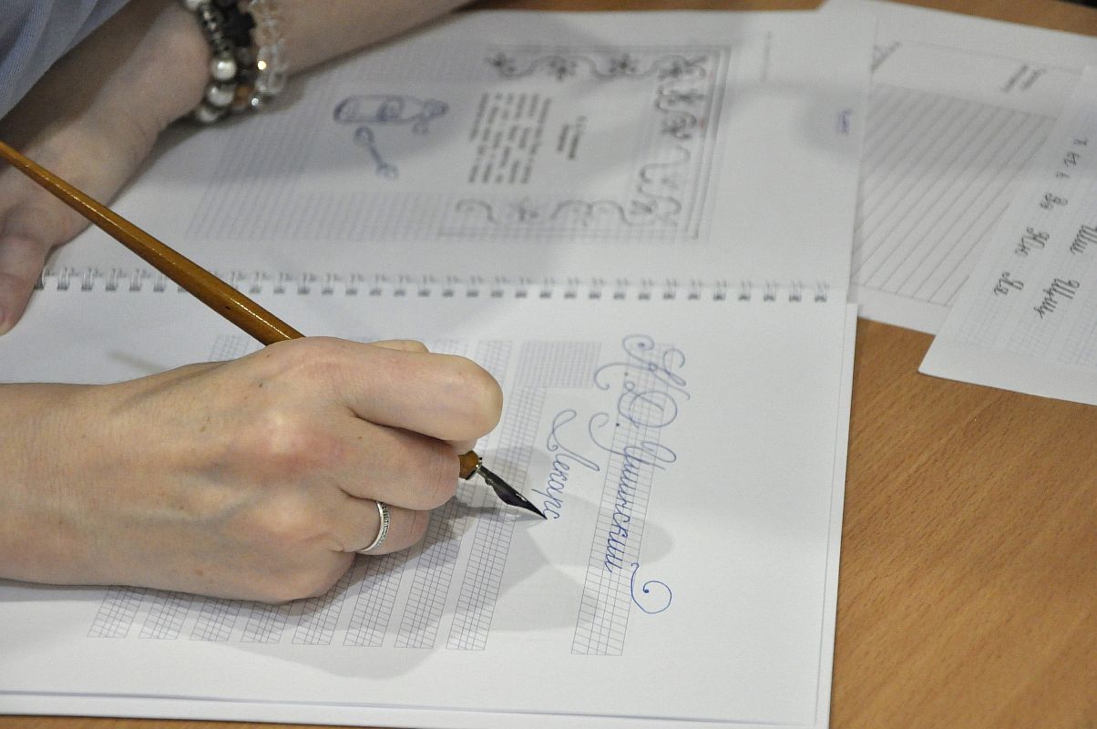 Также хочу выразить благодарность тренеру-методисту, которая научила меня правильно вести уроки по чистописанию, правильно держать перо и писать им, а также помогала, когда возникали затруднения при выполнении заданий. Полученные сегодня знания были очень ценны!