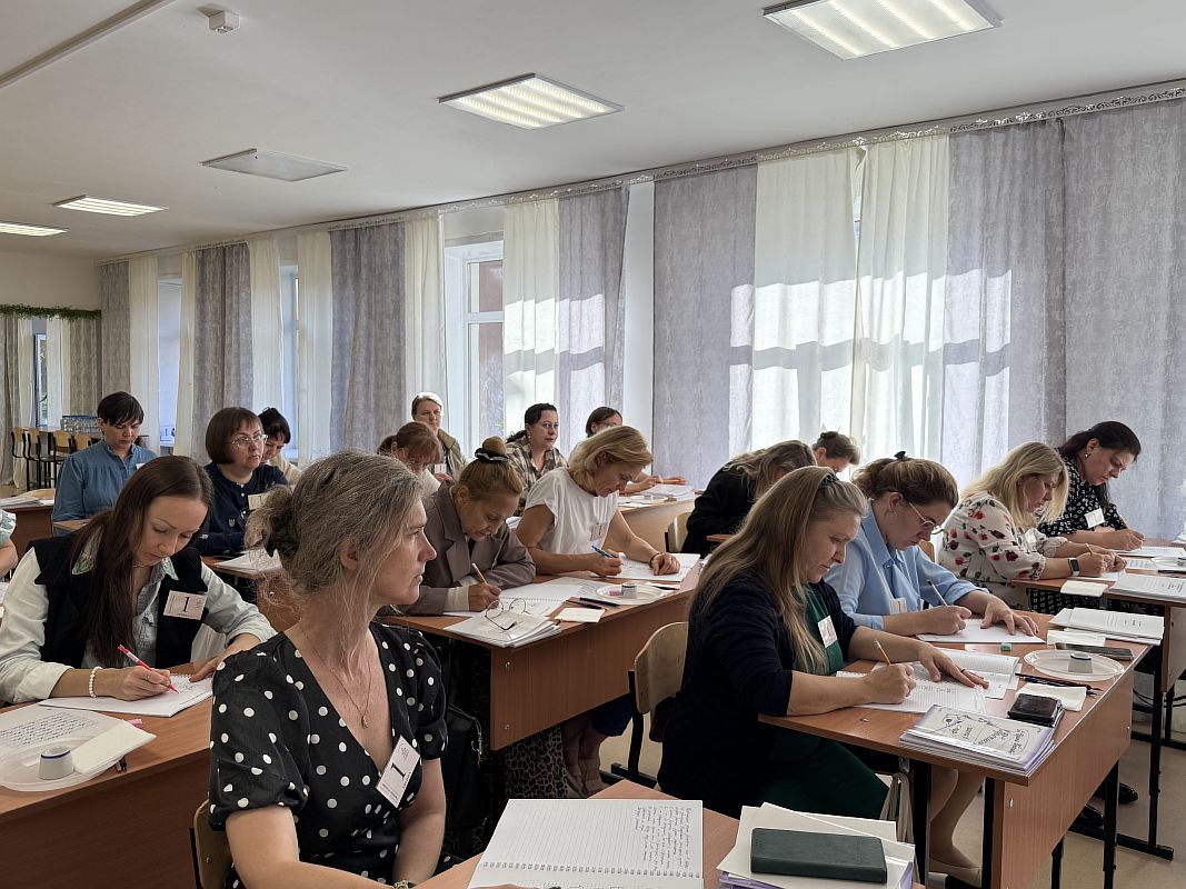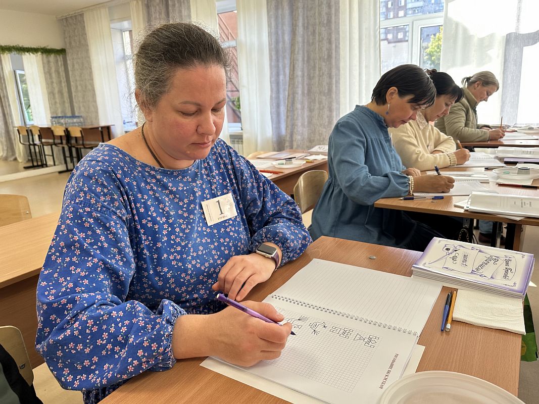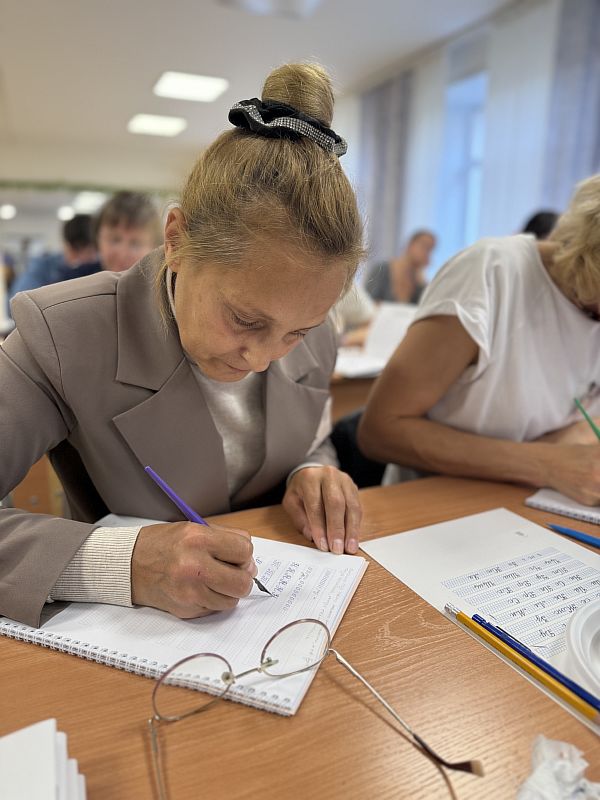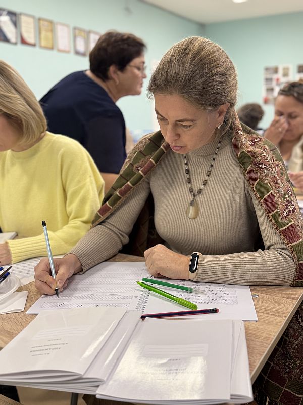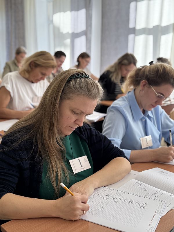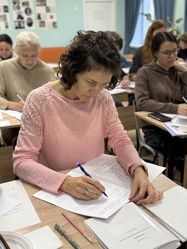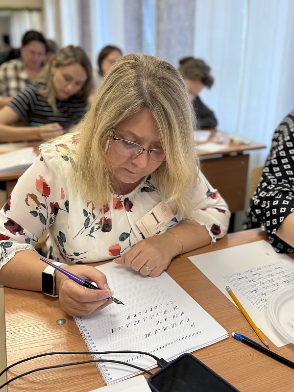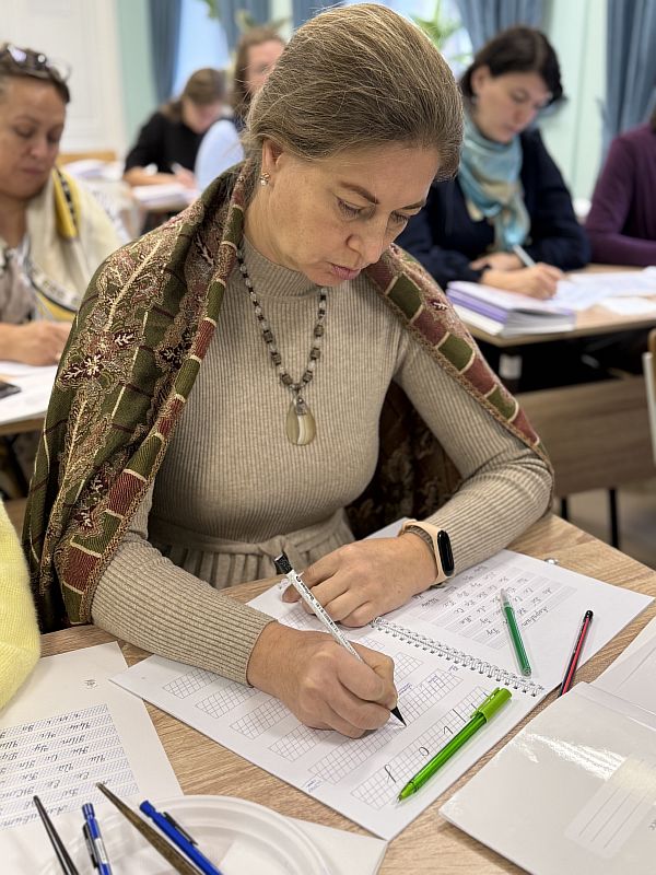 60 человек из Новосибирска и области, Красноярска, Кемерова и Барнаула с большим вниманием и усердием осваивали тонкости красивого и правильного письма. Многие из участников, судя по фото, уже отметились на предыдущих семинарах в августе по дошкольному обучению, начальной школе и книгам для чтения по истории России; теперь пришёл черед чистописания.