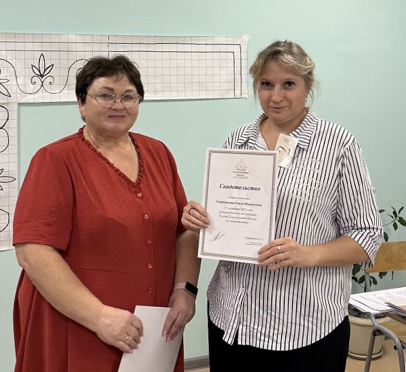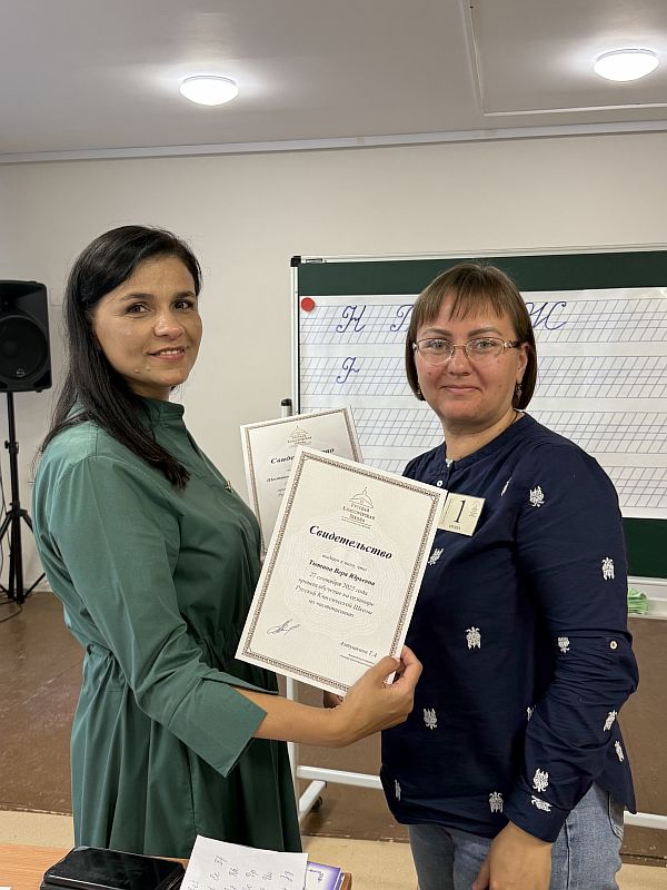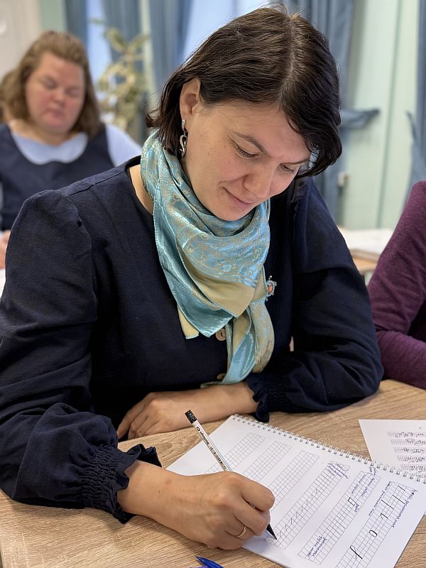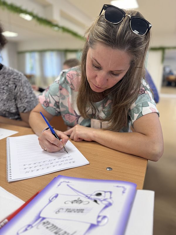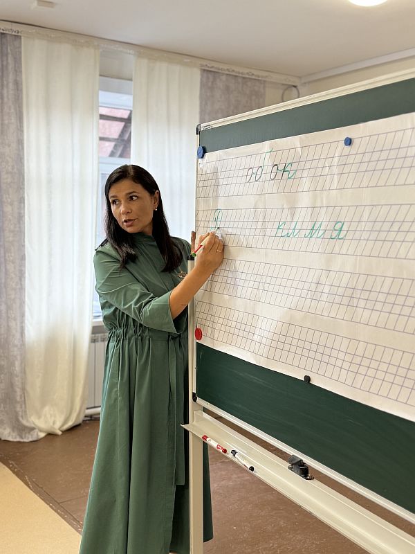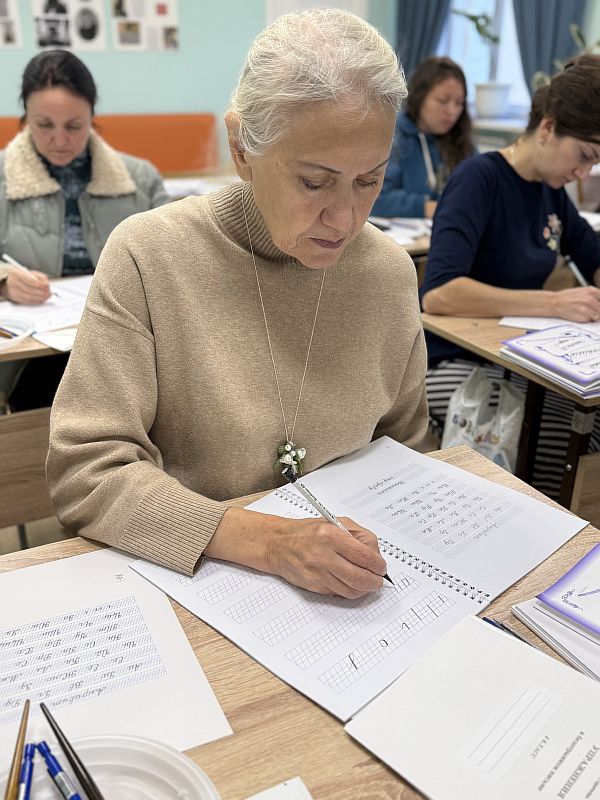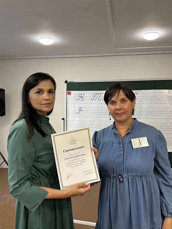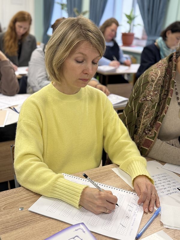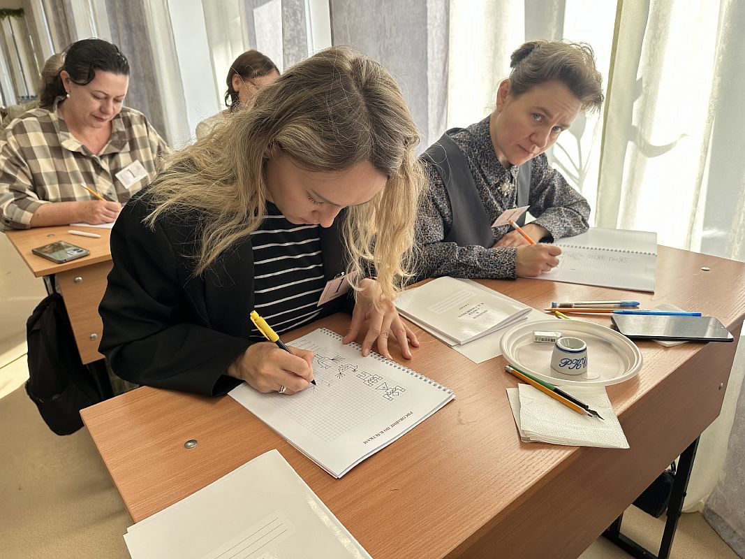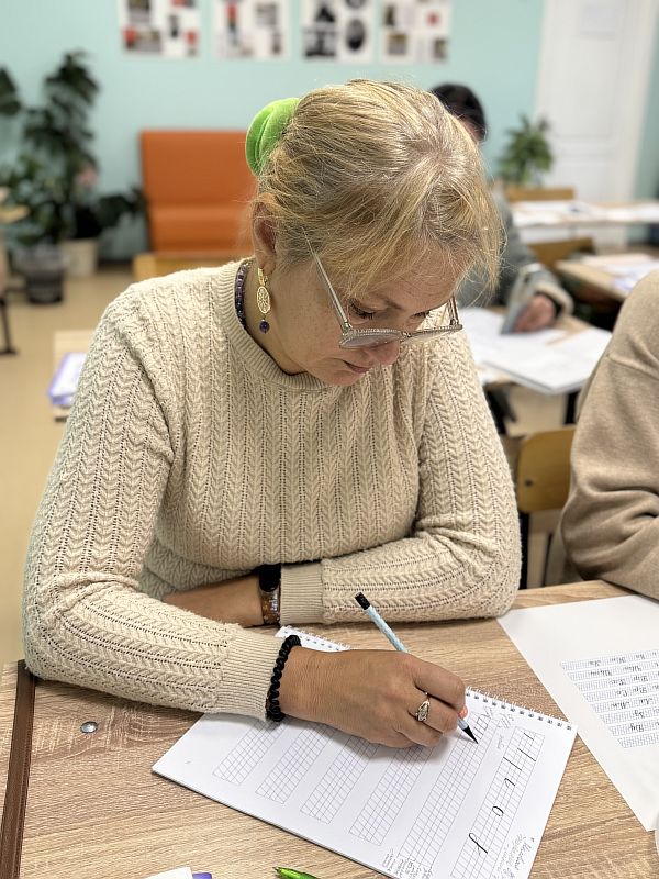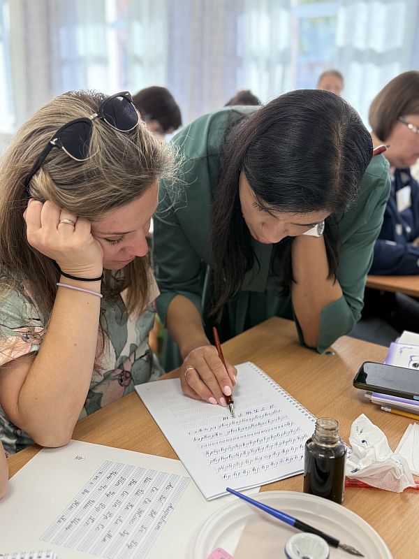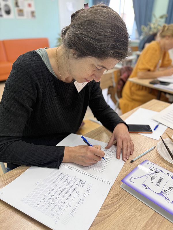 Первыми прошли три однодневных семинара по чистописанию: два 27-го числа, один 28-го. Проводили их тренеры-методисты РКШ Елена Викторовна Барышева и Марина Алексеевна Мамьянова.
