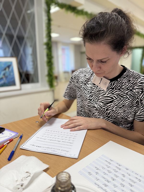 Семинар очень познавательный. Работа над почерком действительно важна, когда сейчас многие привыкли к клавиатуре и гаджетам. Писать пером и чернилами — это особый опыт, который развивает мелкую моторику и концентрацию внимания.