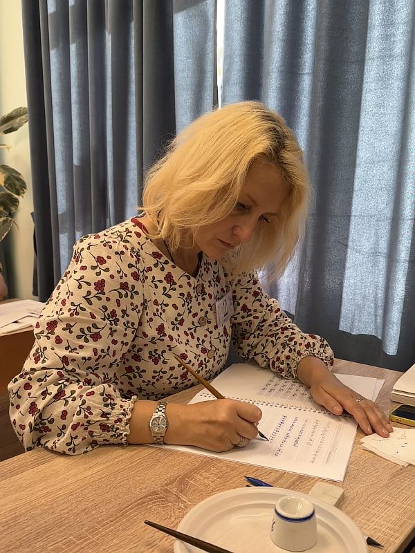 Марина Алексеевна создала спокойную и комфортную атмосферу на занятиях, относилась к нам с пониманием и терпением. Материал дала доходчиво, уделяла внимание каждому, направляла и поправляла, если видела ошибку, отвечала на вопросы не формально, вникая. На семинаре было комфортно и интересно. За один день я очень многому научилась, овладела хоть и небольшим, но навыком письма чернилами.