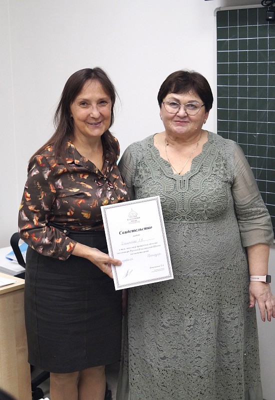 Хочу сказать огромное спасибо за очень глубокую, целостную программу. Хорошие пособия, методические разработки. Это был очень интересный семинар. Я первый раз прикоснулась к церковнославянскому языку, и это было как приобщение к чему-то завораживающему. Узнала для себя много нового, посмотрела на ЦСЯ как на очень живой и интересный язык.