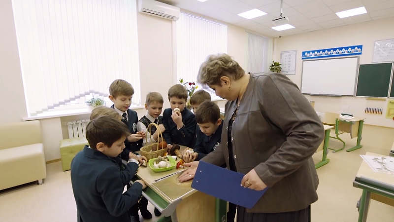 На видео представлен урок чтения в первом классе Русской классической гимназии в Москве. Ребята изучали тему «Грибы, травы и цветы» по «Родному слову. Первой после Азбуки книге для чтения» К. Д. Ушинского.