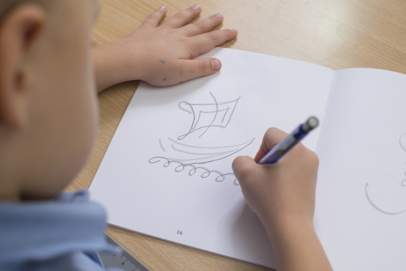 Подготовка к письму включает два вида работы: выполнение орнаментов на листах в клетку и обводку каллиграфических рисунков. Дети учатся обнаруживать пересечения линий на клетчатых листах и соединять найденные точки линиями, совершенствуют координацию движений, пластику руки, способность анализировать линейный рисунок и повторять его, а также знакомятся с изобразительными возможностями линии, эстетическими традициями каллиграфии, красивого письма.