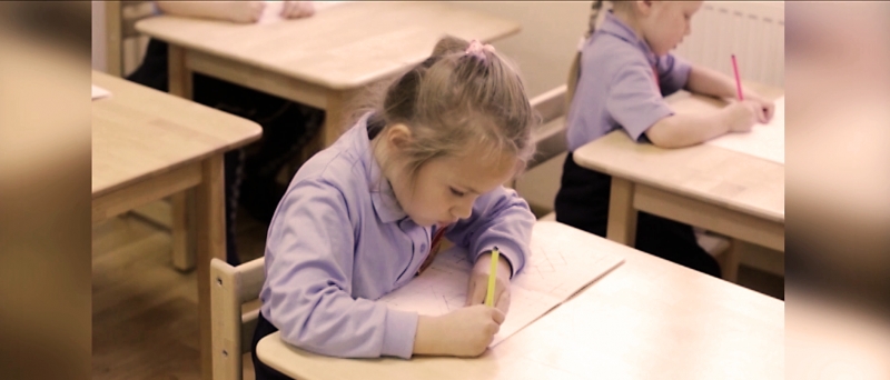 В небольшом ролике, посвящённом обучению письму шестилеток, вы увидите, как дети изображают постепенно усложняющиеся орнаменты, изучают строчную букву, пишут на меловых дощечках и в прописях, занимаются каллиграфическим рисованием, завершая урок. Это всё то, что приучает дошколят к учебной деятельности, но при том не утомляет, поскольку даёт пищу уму, полезную работу рукам и радует взор.