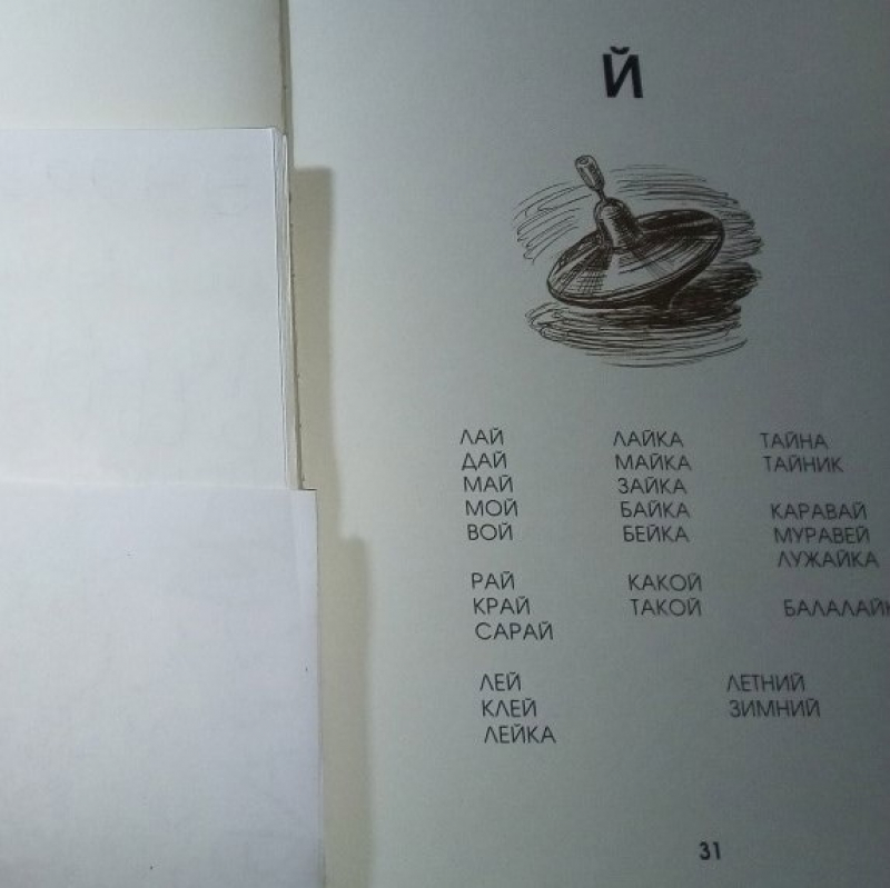 Артикуляционная зарядка. Звуковые упражнения. Повторение изученных букв. Изучение буквы Й. Написание ряда букв в блокноте. Чтение Азбуки и обсуждение прочитанного. Письмо слов («печатание»). Рисование орнаментов в тетради в клетку. Обводка каллиграфического рисунка (юла).