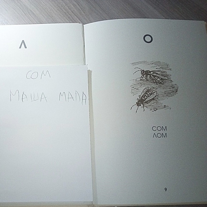 Артикуляционная зарядка. Звуковые упражнения. Повторение изученных букв. Изучение буквы О. Написание ряда букв в блокноте. Чтение Азбуки и обсуждение прочитанного. Письмо слов («печатание»). Рисование орнаментов в тетради в клетку. Обводка каллиграфического рисунка (осы).