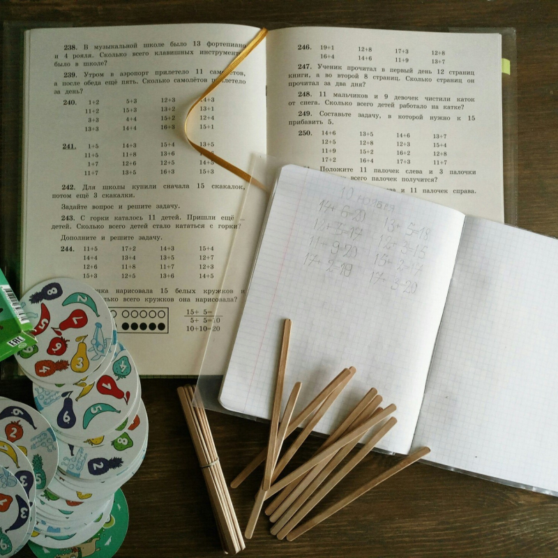 Сейчас изучаем тему «Вычитание с переходом через десяток». Не спешим, идём от урока к уроку в своём ритме. Материал ложится ровно. Особых сложностей не испытываем, но и вперёд сильно не рвёмся.
