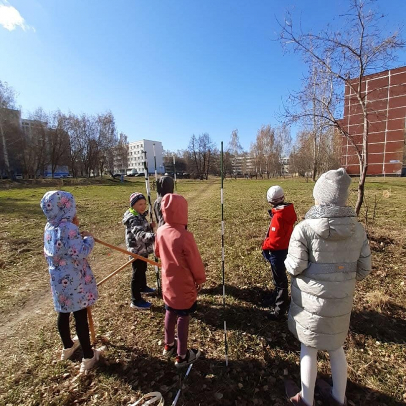 Сегодня в третьем классе мы провели урок «Провешивание прямых на местности».