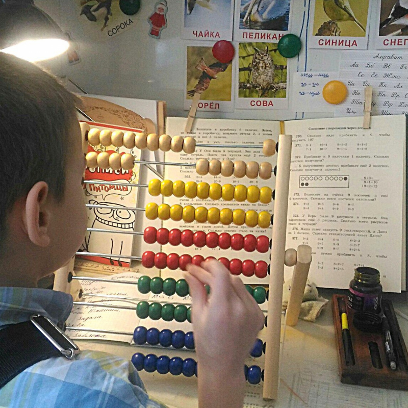 Несмотря на то, что определённый багаж знаний у сына уже имелся, мы, тем не менее, начали сначала, то есть с первого урока арифметики, словесности и так далее. В связи с этим после бурного восторга у сына возникли определённые трудности.