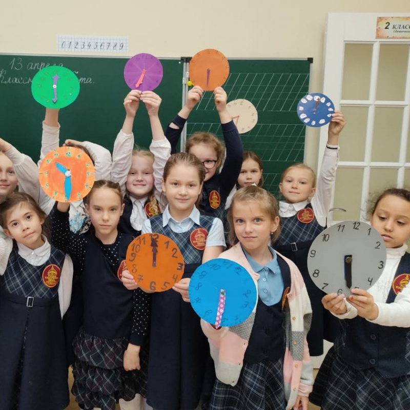 По заданию учителя дети показывают на своих «часах» время, когда они встают, идут в школу, возвращаются домой, начинают готовить уроки, гуляют, ложатся спать... Так проходит изучение темы «Меры времени» во вторых классах.