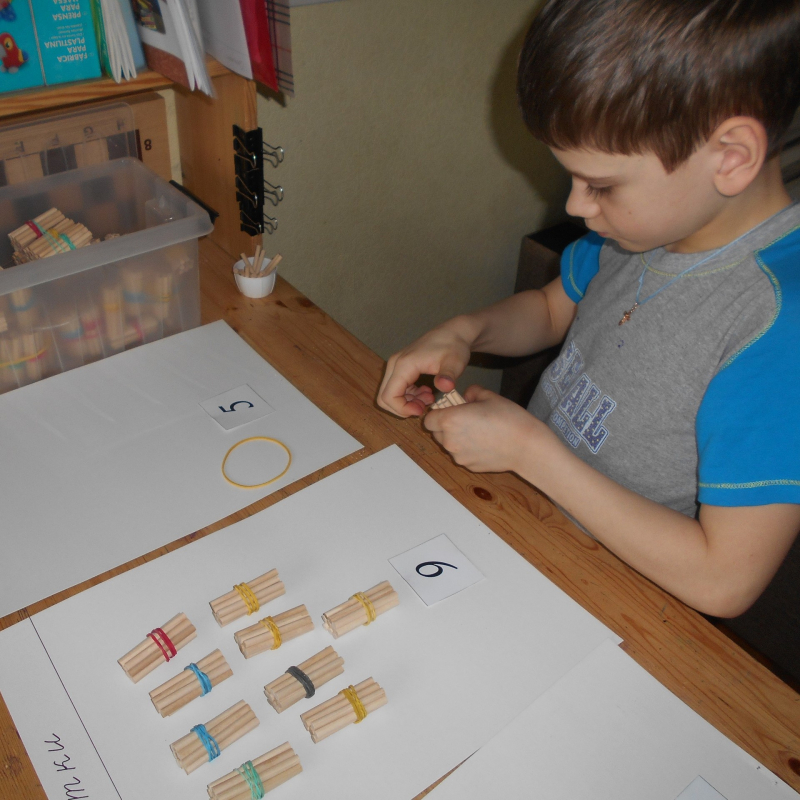 Сейчас у нас счёт на палочках столбиком, сложение и вычитание трёхзначных чисел. Самое трудное в сложении на палочках — это укротить непослушную новообразованную сотню)))
