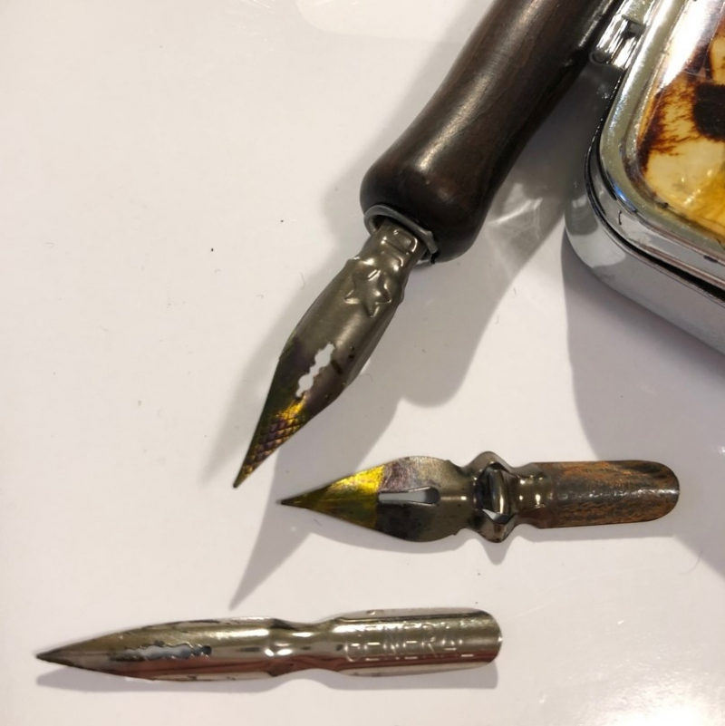 Вчера мы провели пробу перьев и выбрали наиболее удобное из трёх — знаменитой «звёздочки», тонкого и изящного перышка General и Leonardt № 41.