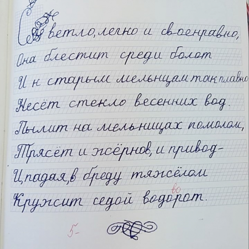 Решила составить Маше компанию на уроке русского языка. Сравниваем, у кого лучше, подчёркиваем самые удачные буквы.